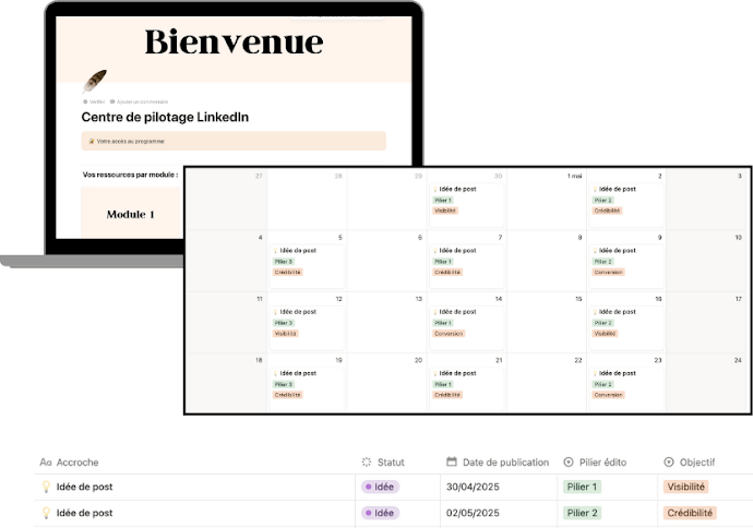Espace Notion + calendrier éditorial - Un environnement prêt à l'emploi (Valeur : 97€)