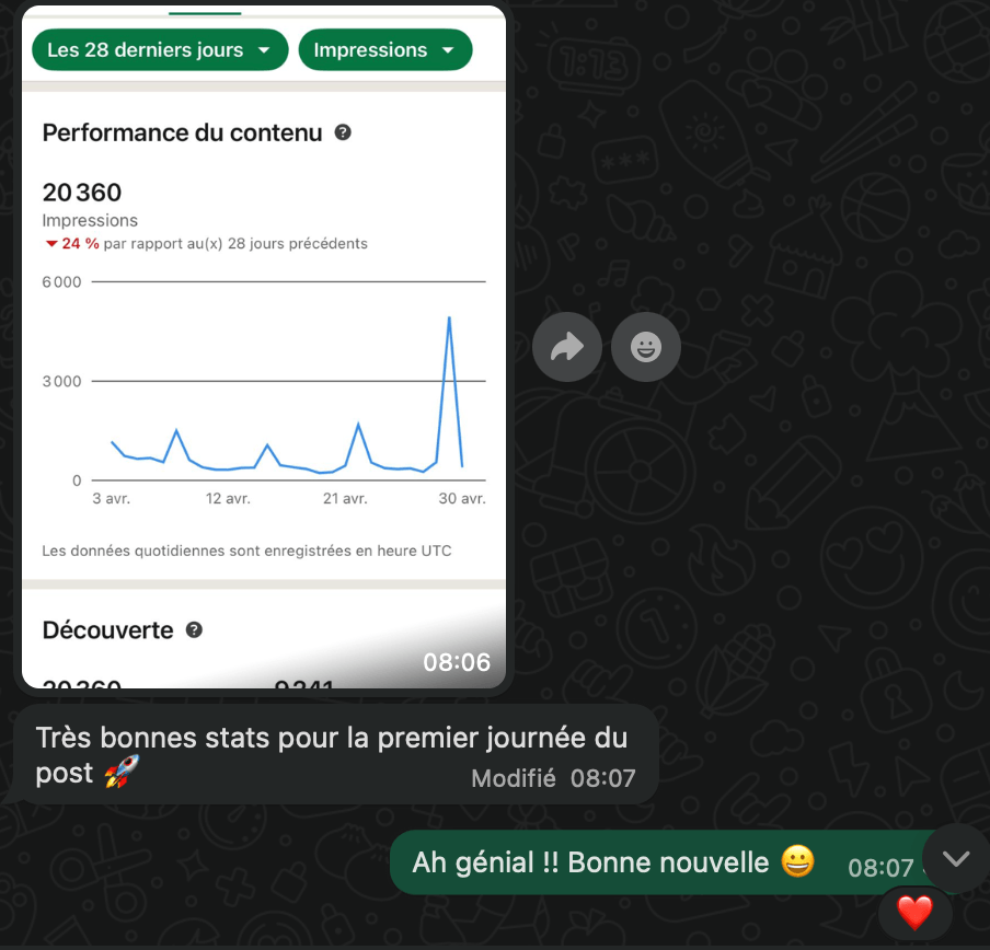 Et je vous dirais qu'au-delà de la visibilité que ces quelques premiers contenus m'ont amené, j'ai aussi eu de vraies opportunités business :
