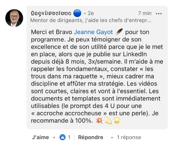 Le Programme AURA vous donne une méthode complète qui fait travailler tous les éléments ensemble : profil, contenu, interactions et positionnement.